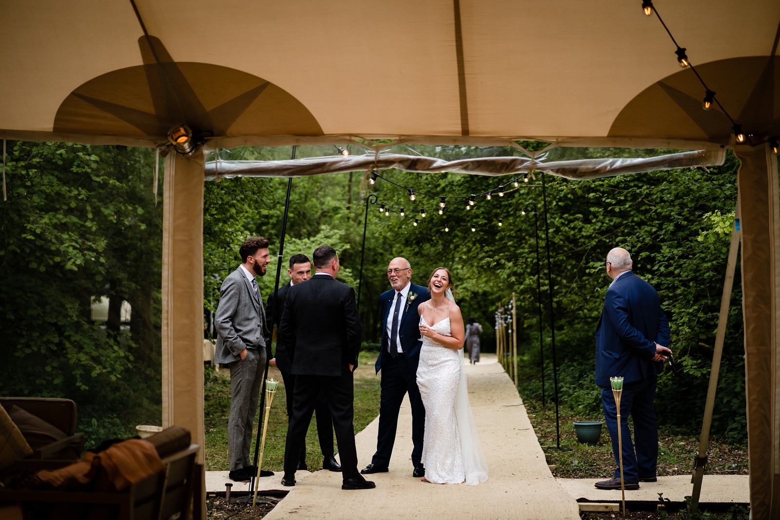 You won’t find Sean and Laura’s wedding venue on google as it was set in the back woodlands part of her parents home in Shalden village. All they wanted for their day was a relaxed atmosphere, good food and a hell of a party. In my opinion they ticked all those boxes and more! The bride got ready in the Swan Hotel in Alton and with a short travel to the local Shalden village church for their ceremony. From there guests were coached to their family home where the whole family has literally worked for months in preparation for the day. The couple had a team of great service providers listed below!