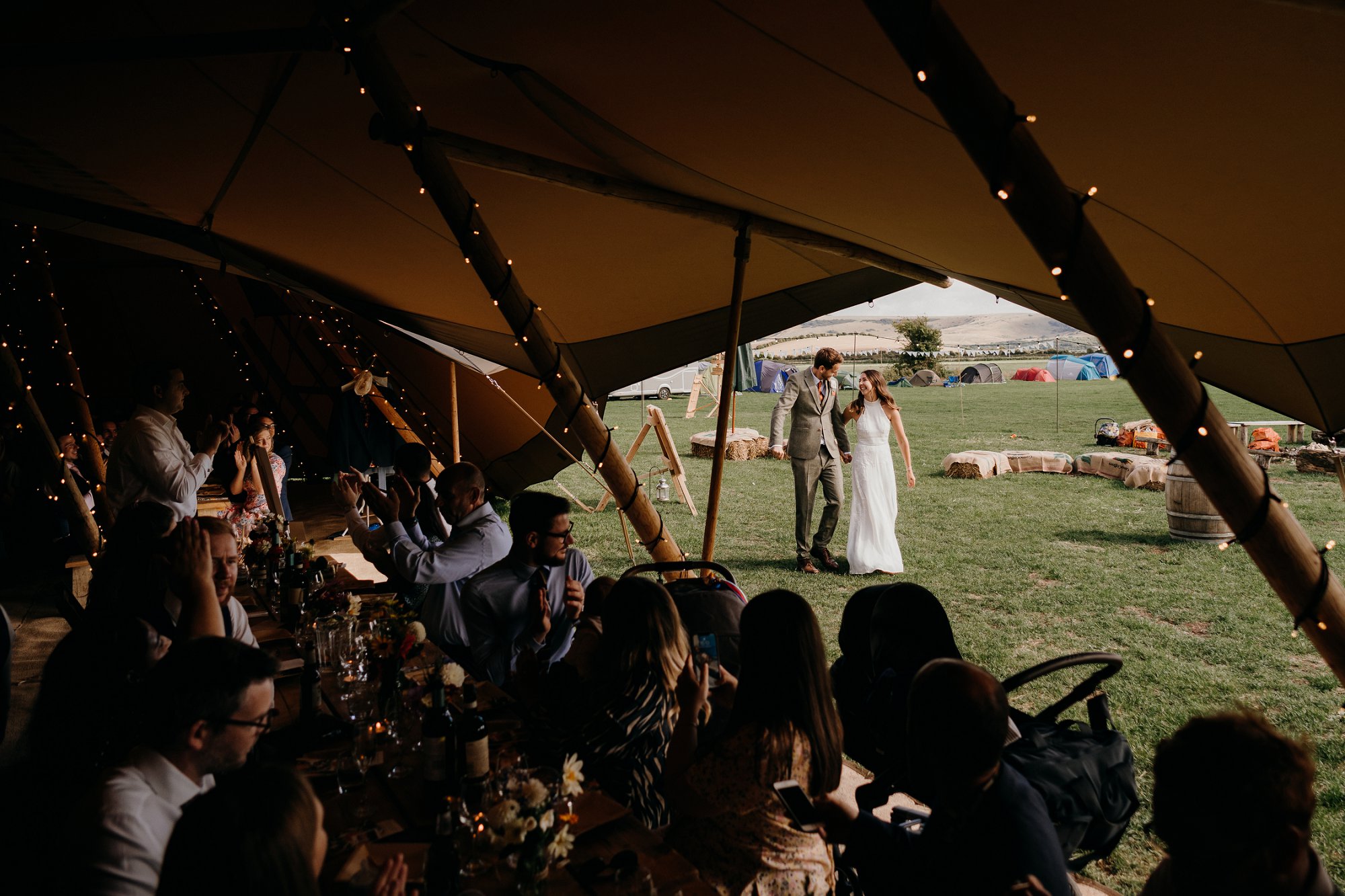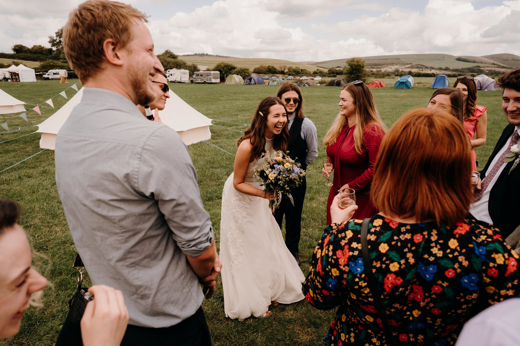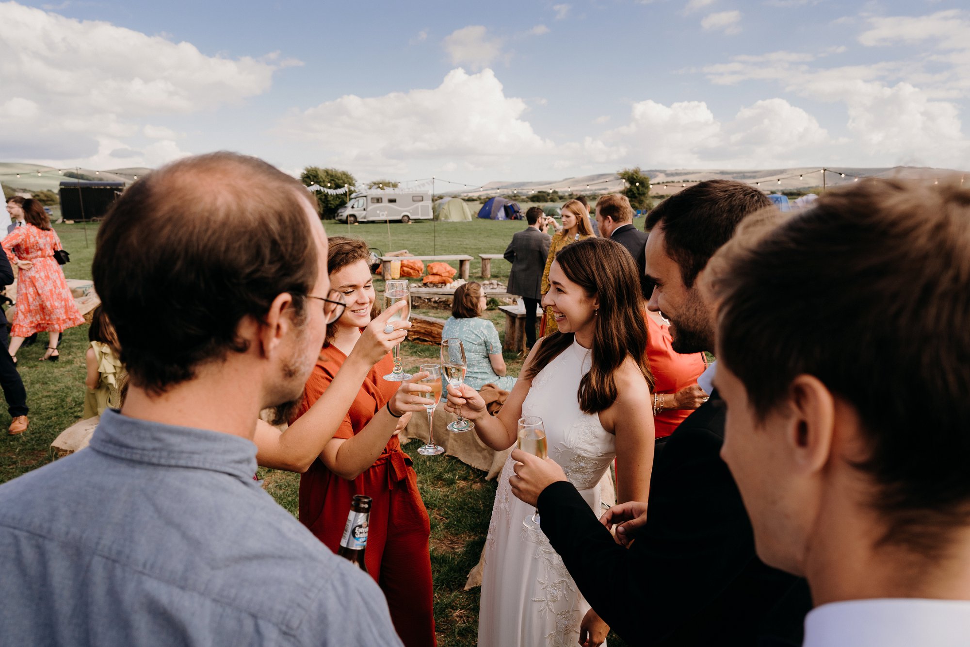 The Party Field Wedding Lewes – I loved every second of the James and Kim’s DIY day, from the outdoor dancing to the home made cake table! When I first got the brief from James and Kim for their day I was very excited. When it came to final planning I got to understand more about the how where and when for their day. I loved how family got invloved and most guests camped on the same location the wedding was going to be.